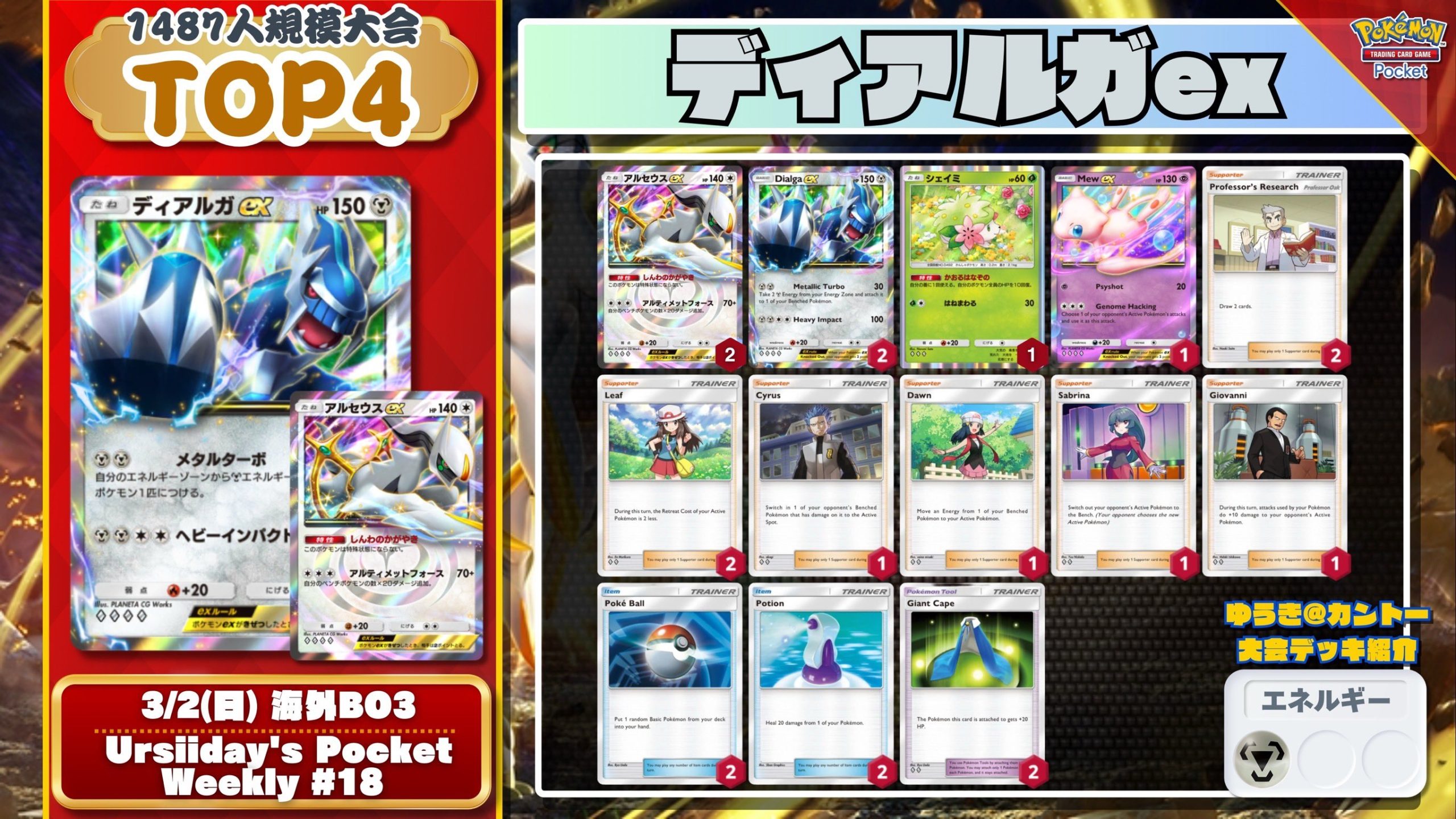 多分オリジンパルキアは流行る パルキア4枚とマナフィ2枚